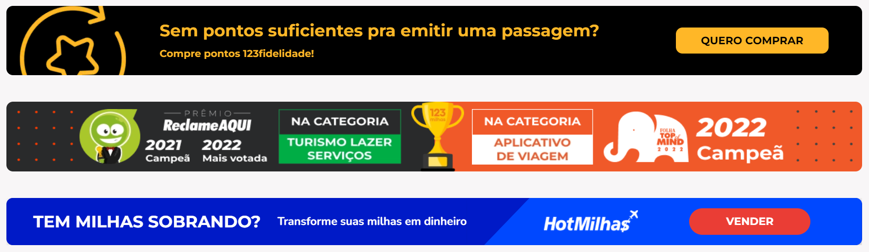 Se você está procurando os melhores preços em passagens aéreas, temos opções promocionais imperdíveis. Fique de olho em nossas oportunidades durante a madrugada, quando geralmente são disponibilizadas ofertas relâmpago. Então, já sabe: pensou em passagens aéreas baratas, pensou na 123milhas.